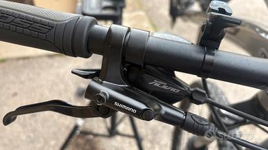 Vendo mounatin bike. La bici e in ottime condizioni, taglia m, ha il telaio in alluminio cambio shimano alivio 9 velocità al posteriore e due deragliatori all’anteriore , freni a disco idraulici shimano, forcella ammortizzata, ruote taglia 29’’.