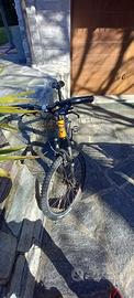Tipo: Mountain Bike biammortizzata (Full Suspension). Caratteristiche: Telaio arancione e argento, ammortizzatore posteriore Uso: Adatta a percorsi fuoristrada grazie al sistema di sospensioni sia anteriore che posteriore.