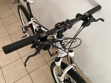 Tubo di sterzo, manubrio e reggi sella Ritchey, forcella RockShox XC32-100, freni a disco idraulici Shimano, gruppo Shimano XT con cambio 10 Speed, guarnitura tripla Shimano, ruote 26 con mozzo Deore e cerchi Taurus 559-19, copertoni Schwalbe. In condizioni splendide, priva di alcun graffietto, mai caduta nemmeno da ferma, assolutamente da vedere!