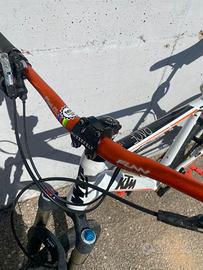 Vendo Bici ktm Race Line tenuta molto bene, sempre tagliandata. Appena cambiate camere d’aria e pasticche. Monta ammortizzatori Fox evolution series, sterzo funn, cambio shimano XT. Insieme do anche gomme tacchetate al 60%, sterzo originale.