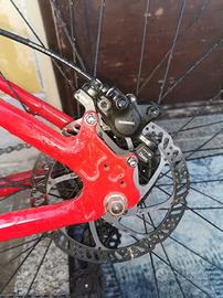 Bici con un anno e mezzo di vita, piccoli difetti facilmente sistemabili, modificata per bike life con copertone posteriore maxxis 27.5 liscio, e anteriore maxxis 27.5 tassellato, freno posteriore Shimano mt201, disco posteriore 160mm da 6 fori, cambio shimano a 8 marce.
