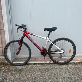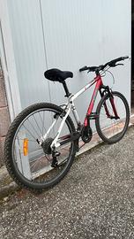 Mountain Bike Dechatlon S2 Taglia M In alluminio Ruote da 26’’ Colore rosso e bianco opaco con sella in Gel Ammortizzatori davanti con cambio Shimano a 8 rapporti.