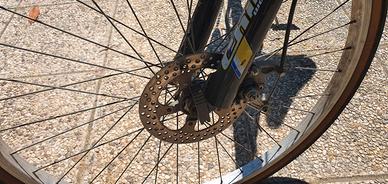 mountain bike con sospensioni anteriori e posteriori freno a disco anteriore e 21 cambi. telaio acciaio