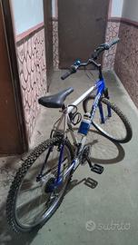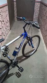 Vendesi mountain bike Montana modello Escape, colore bianco/blu, ruote 20", cambio Shimano 21 rapporti, freni a pattino, completa di borraccia e campanello. La bici ha qualche anno, ma è stata usata molto poco ed è ferma in garage. Non ha danni particolari né problemi.