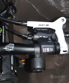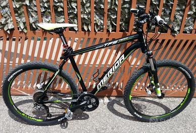 Bicicletta MTB Merida 27,5" nera e verde con cambio 27 rapporti, freni a disco con pompe idrauliche e blocca ammortizzatore ant. Utilizzata solo per passeggiate.