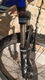 bicicletta Mountain bike marca NSR (Nuzzi sport racing) colore blu, modello Z-2. -Telaio aluminium 54 -Ammortizzatore anteriore bloccabile RST -Cambio Shimano Deore 8 velocità -Freni V-brake -contachilometri areo -borraccia -kit intervento sotto sella -pompetta si la bici che i copertoni sono in ottime condizioni come si può vedere dalle foto