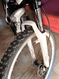 vendesi Mountain bike come nuova, marca LEE COUGAN, marce 3×9, ammortizzatori a olio, accessoriata di coprisella in gel, borraccia acqua, pompa, marsupio, kit camera d aria, luce anteriore e posteriore, sella e manubrio di ricambio. Nessun graffio, tenuta maniacalmente. Prezzo non trattabile