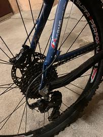 vendo mountan bike usata ma tenuta bene. sempre stata pulita e anche sempre fatta la manutenzione ordinaria. freni a disco com pastiglie e olio appena cambiati forcelle perfette con blocco/sblocco sospensioni camera ad aria anteriore appena cambiata 10 rapporti dietro e 3 davanti la bicicletta presenta qualche graffio ma niente di grave per info scrivetemi prezzo trattabile NON SPEDISCO NO PERDITEMPO