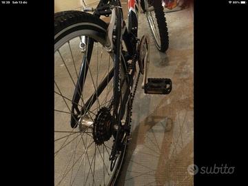 Mountain bike mai utilizzata per bambini e ragazzini con cavalletto, campanello, contachilometri, ammortizzatori, marce e corona. Disponibile al ritiro o consegna nei pressi di Bologna.