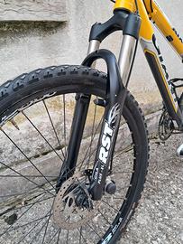 Mountain bike per ragazzo, marca Giant, forcella ammortizzata, doppio freno a disco, 27 velocità. Buone condizioni, prezzo non trattabile. Si accettano solo pagamenti in contanti alla consegna.