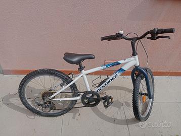 Vendo mountain bike per bambini Rockrider ST 120 da 20 pollici, adatta a bambini dai 6 ai 9 anni. Ruote: 20 pollici. Velocità: Sistema a 6 velocità per affrontare i primi percorsi collinari. Telaio: Acciaio, progettato per la robustezza. Peso: Circa 11,5 kg. In buone condizioni, prezzo non trattabile
