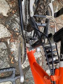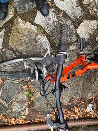 Mountain bike ragazzo. Colore arancio. Ruote 24”, cambio Shimano 3x7 rapporti. Ammortizzatore centrale.