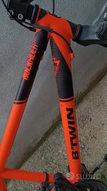 Vendo mountain bike Rockrider 500 (marchio B'Twin - Decathlon) in colorazione arancione fluo e nero, ideale per ragazzi/ragazzine dai 9 ai 12 anni (altezza indicativa 135-150 cm).