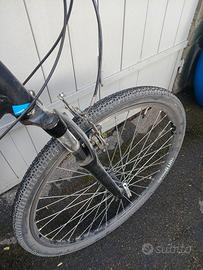 mountain bike Decathlon solo impolverata pronta all'uso bici scorrevole e leggera la bici monta copertoni nuovi da gravel diametro ruote 28 pollici si può provare e visionare senza impegno tevai in alluminio taglia XL posizione di guida comoda per lunghi giri per tutti i tipi di sterrato