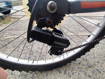 Trasmissione: Sistema Shimano a 21 velocità (3x7) con deragliatore posteriore SIS, anteriore Tourney e cassetta 11/32.