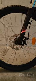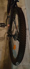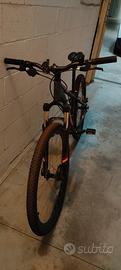 Mountain bike blu/arancio taglia S (150 -160 cm) cerchi 27,5" , 28 raggi doppia parete telaio un alluminio, freni a disco meccanici trasmissione monocorona 8 velocità manubrio acciaio 64 cm, manopole soft touch