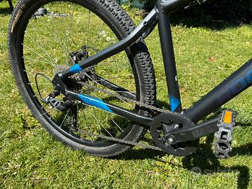 Ottima bici tenuta molto bene come da foto. Cerchi 27,5” taglia telaio M: tra 1,65m e 1,74m. Colore nero fumo e blu. Trasmissione monocorona 8 velocita Freni a disco meccanici Sospensione anteriore regolabile Cambio per passaggio a bici con cerchi 29”…