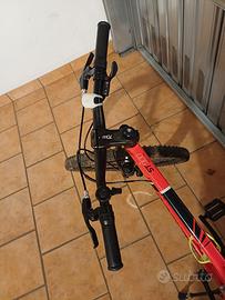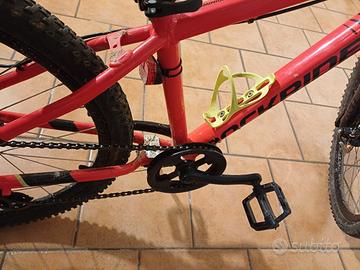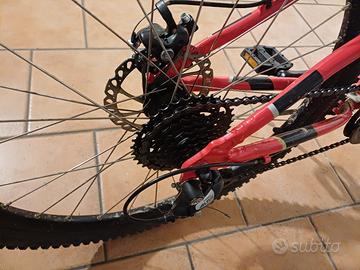 Vendo mountain bike Rockrider ST 900 per ragazzi, taglia 24 pollici, ideale per bambini/ragazzi tra i 9 e i 12 anni circa (altezza da 1,35 a 1,50 m). La bici è una delle migliori proposte Decathlon per i giovani, con un telaio leggero in alluminio e una vera forcella ammortizzata Rockrider (travel 80mm). Caratteristiche principali: Ruote: 24 pollici con copertoni BTWIN AllTerrainGrip in buone condizioni (utilizzati, ma non ancora consumati). Cambio: Shimano Altus a 8 velocità con selettore rapido a leva sul manubrio (cambio posteriore preciso). Freni: Freni a disco meccanici anteriori e posteriori per un'ottima frenata in ogni condizione. Accessori: È incluso il portabottiglie di colore giallo e il cavalletto laterale, pronto per l'uso. La sella è in ottime condizioni con dettaglio giallo. Condizioni: La bici è stata utilizzata e presenta i lievi segni d'uso(le manopole dei freni sono leggermente inclinate), visibili in foto . La bici è robusta, affidabile e pronta per divertire un nuovo ciclista. No scambi. No spedizione, solo ritiro a mano in zona [Palazzolo Sull'Oglio].