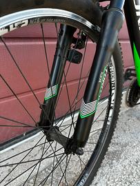 Vendo Mtb Torpado plutone 6503. Usata molto poco. Copertoni ancora in buonissimo stato. La mtb ha freni classici anteriori e posteriori. Cambio 21 velocità 7 corone posteriori 3 alla ruota. La bici viene data con portaborraccia, borraccia, contachilometri funzionante da sostituire la batteria, luce bianca anteriore funzionante,luce posteriore funzionante. Per chi vuole posso portarvela, ci si mette daccordo per il prezzo del trasporto.