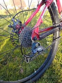 Vendo bicicletta Mountain bike diamond back, ruote da 26,5, forcella ammortizzata rockshox, manubrio maggiorato, cambio Shimano deore, freni a disco ant e Post, pneumatico posteriore nuovo, varie modifiche estetiche, sella in gel.... etc.....