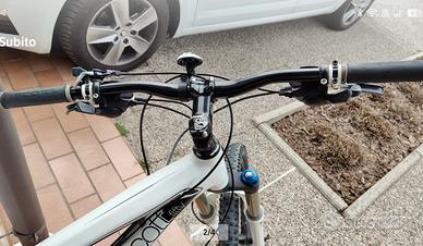 Vendo MTB Scott per inutilizzo in buone condizioni. Taglia M, bi ammortizzata cerchi 26", cambio Shimano XT. Sella originale più una Selle Italia. Solo le manopole sono da cambiare. Solo ritiro dopo visione, prezzo trattabile. Caratteristiche: Peso12,9 kg (M) TelaioScott Genius Alloy 6061 Custom Butted Hydrofrom Monocoque Tubes with replaceable hanger, sealed aircraft bearings, 150 mm rear travel ForcellaRock Shox Revelation 409 Dual Air / Reb. Adj./ Lockout / 140 mm Travel AmmortizzatoreScott Equalizer 2 / 3 Modus Lockout-Traction / Dual Reb. Adj. / Remote Control Manubrio Scott Pilot 22 Comp 6061 Alloy, 22 mm rise, 660 mm Serie sterzoFSA Nr.9 / 1 1/8" Semi Integrated Reggisella Scott RC 03-60 (34,9 mm) SellaGenius Scott Gruppo cambio Shimano XT Shadow 27 Speed | Shimano SLX, Rapidfire Plus Sistema frenante Avid Juicy 3.5 (185 mm front and 185 mm rear Rotor) Cerchi Alex XC-44 Disc 32H / black MozziFront: Scott Disc Comp. Rear: Shimano FH-M525 Disc Colore White TipologiaMTB Marathon / All Mountain