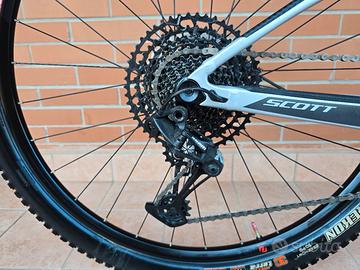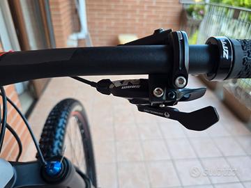 Marca: Scott Modello: Spark 930 (2019) Tipo di prodotto: MTB Full suspension Ambito di applicazione: Cross Country & Trail (XC) Peso: 13 kg circa Colore: silver/black/red Taglia: S Telaio: Spark 3 Carbon / IMP technology / HMF Mainframe BB92 / Alloy SL 6011 swingarm SW dropouts for Boost 12x148mm 2.6 tire compatible / TBC Trunnion box construction Forcella: FOX 34 Float Rhythm Air Grip 3 / 3-Modes / 15x110mm QR axle / tapered steerer 44mm offset / Reb. Adj. / Lockout / 120mm travel Sospensione: FOX NUDE EVOL Trunnion SCOTT custom w. travel / geo adj. 3 modes: Lockout-Traction Control -Descend DPS / Reb. Adj. / Travel 120-85-Lockout / 165X45mm Serie sterzo: Syncros Pro Drop in / Tapered 1.5"-1 1/8" bearing diameter size 42mm and 52mm Attacco manubrio: Syncros FL2.0 / 6061 Alloy 6° / integrated Top Cup / 31.8mm / 1 1/8" Manubrio: Syncros FL2.0 T-Bar / Alloy 6061 T shape Flat / 9° / 740mm Manopole: Zitto Set pedivelle: SRAM NX Eagle DUB Boost 32T Deragliatore Posteriore: SRAM NX / Eagle Cassetta Posteriore: SRAM NX XG1230, 11-50T, 12 speed Leva cambio: SRAM NX Eagle Trigger Freni: Shimano SLX M7000 Disc / 180mm F&R SM-RT66 Rotor Set ruote: Syncros Silverton 2.5 6 Bolt F: 15x110mm, R: 12x148mm Boost 25mm Tubeless ready rim / 28H / DT RWS Pneumatici: Maxxis Rekon / 2.4" / 120TPI Kevlar Bead TR Tubeless Ready / EXO 3C maxx Terra Sellino: Syncros XR2.0 / CROM rails Reggisella: Syncros Dropper 2.0 Remote 31.6mm Pedali: Zitto Applicate pellicole protettive effetto carbonio e trasparente in alcuni punti del telaio. Protezioni in gomma su pedivelle e leve freni. Lavata e trattata con prodotti specifici (Muc-off). Percorsi pochi km, vendo per inutilizzo. Spedizione con corriere espresso, assicurata. #mountainbike #mtb # bici #bicicletta