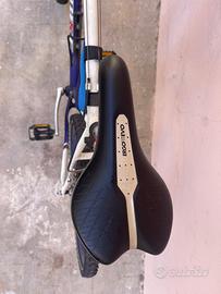 Mountain Bike Tecnobike TBX 36 26” – Usata ma in ottime condizioni generali! Vendo questa MTB classica marca Tecnobike modello TBX 36, telaio in alluminio blu e bianco con grafica sportiva. Caratteristiche principali: • Ruote da 26 pollici con copertoni Vuelta (buona aderenza) • Forcella ammortizzata anteriore Zoom con blocco • Freni a disco anteriori e posteriori (V-Brake posteriori) • Cambio posteriore Shimano (funzionante) • Sella comoda nera • Portaborraccia e taschina portaoggetti sul telaio • Manubrio dritto con impugnature • Pedali in metallo La bici è funzionante e pronta all’uso. Telaio solido, vernice in buono stato con qualche segno normale d’uso (graffi leggeri dovuti all’età). Ideale per ragazzi/adulti di statura media-alta, uso città, ciclabili, sterrati leggeri o come prima MTB. Taglia: adatta a persone da circa 160-180 cm (verifica di persona). Prezzo richiesto: 110€ – trattabile Condizioni di vendita: • Ritiro a mano • Vendita da privato, no garanzia Bici robusta e affidabile, perfetta per chi cerca una mountain bike economica senza spendere tanto!