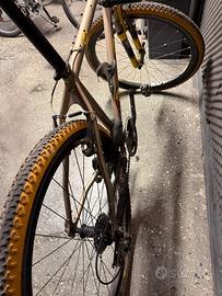 Mtb vintage telaio alluminio DM telai, ottima componentistica: cerchi 26 pollici Mavic Crossmax, gruppo cambio 21 rapporti e freni v-brake Shimano XTR, manubrio carbonio Easton, forcella Shimano Judy, peso sotto i 10 kg