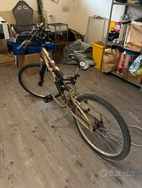 mountain bike Uomo / Donna, usata pochissimo e riposta in garage diversi anni fa' e mai più usata. Con una pulizia e una oliata agli ingranaggi, torna nuova. Svendo a 40 € NON TRATTABILI. Visionabile a Santena (TO)