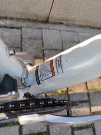 Bicicletta mountain bike Trek Alpha aluminim Series 3, ruote 26, taglia M (l'etichetta si è staccata quando l'ho lavata), telaio in alluminio, condizioni ottime. Rimasta ferma in garage per diversi anni, copertoni ancora validi, cambio e freni perfettamente funzionanti. Monta shimano Acera 3x7 (14-34 al posteriore, credo 28-38-48 all'anteriore). Freni V-brake Tektro. Svariate componenti Bontrager.