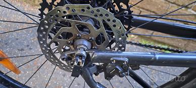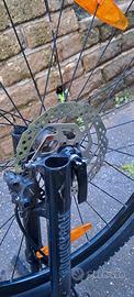 MTB Trek Marlin 8 Taglia S 27.5 Telaio: Alluminio Alpha Silver, tubo orizzontale ricurvo, passaggio cavi interno, supporto freno a disco fodero orizzontale, attacchi per portapacchi e cavalletto, 135x5mm QR Forcella: RockShox Judy Silver, molla Solo Air, regolazione ritorno, bloccaggio idraulico TurnKey, offset 42mm per ruote da 27.5", 100mm QR, escursione 100mm Trasmissione: SRAM SX Eagle, 12 velocità Guarnitura: SRAM SX Eagle, corona in acciaio 30T, linea catena 49mm, lunghezza 170mm Freno: Disco idraulico Shimano MT200 MISURA S: altezza ciclista: 155 - 165 cm interno gamba: 74 - 78 cm Trek originale ormai introvabile in questa colorazione taglia S, vendo per passaggio a taglia M. Valore di mercato nel 2023 al momento dell'acquisto 1.200€. Usata come da foto con diversi segni di usura sul telaio ma nessun danno ai componenti fondamentali, bicicletta completamente funzionante e operativa. Copertoni mai sostituiti e usurati. Non spedisco, disponibile a farla vedere dal vivo. Prezzo leggermente trattabile.