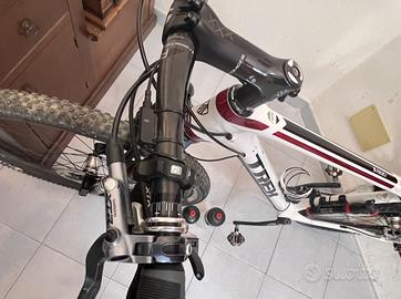 Completamente in fibra di carbonio, pesa sui 9kg totali. Cerchi 29, Forca Fox 32 kascimata elettronic G2 assetto variabile con comando elettrico sul manubrio, Intero allestimento SHIMANO XTR: Leveraggio, Cambio 2x10, Freni, Pedivella e Agganci.