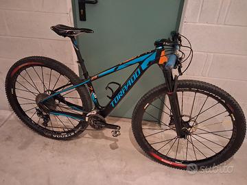 Telaio TORPADO RIBOT taglia S in carbonio. Freni a disco SHIMANO XT.Cambio SHIMANO XT 2×11velocita`. Forcella ROCK SHOK modello RL 100 MM. Ruote MAVIC CROSSMAX PRO da 29.