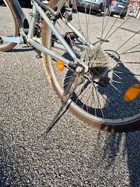 Bicicletta Mountain Bike uomo nera, con altezza sellino regolabile. è presente il cavalletto. Ruote forate. No spedizione, solo ritiro in loco.