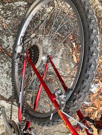 Muontain bike uomo colore rosso. Cambio Shimano 3x7 rapporti. Ruote 26”.