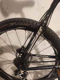 nera con telaio in alluminio e posteriore in carbonio,con cambio e comandi completi Shimano XT e diversi particolari in carbonio.