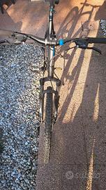 Mountain Bike Rockrider RR5.2 2019 Nera opaca Ammortizzatore anteriore Pedali in acciaio Manubrio e sellino regolabili Cambio Shimano a levetta Freno anteriore a disco Freno posteriore a tamburo Gomme con grip in ottimo stato Telaio leggero