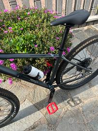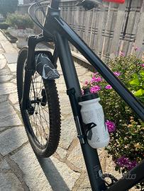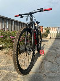 La bici ha computerino disponibile, borraccia, pompa x gomme, freni a disco, amortizzata nell’anteriore.