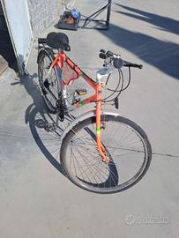 In vendita splendida Mountain Bike vintage firmata Montana, un classico del design ciclistico italiano degli anni '90. La bici si presenta in ottime condizioni estetiche e funzionali, ideale per amatori del genere o per chi desidera un mezzo affidabile e di stile per gli spostamenti urbani. Telaio: Acciaio con geometria rigida, livrea originale bicolore arancio fluo e argento metallizzato. Cambio: Sistema Shimano SIS (18 velocità), preciso e resistente. Accessori inclusi: Portapacchi posteriore in metallo, parafanghi integrati, borsa porta-attrezzi da telaio e cavalletto. Stato: Pronta all'uso. Pneumatici e freni in buono stato. Un pezzo di storia del ciclismo "made in Italy", solido e versatile. #MTBvintage #BiciMontana #MountainBike90s #BiciclettaVintage #Eroica #CityBike #VintageCycling #MontanaBikes #BiciUsata