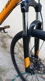 Mountainbike nuova mai rinnuovata per motivi di salute. Fatta fare su ordinazione con forche ammortizzate, sella ammortizzata, tubo sella ammortizzato, maniglie in neoprene spesse antivibrazioni, cambio Shimano.