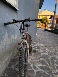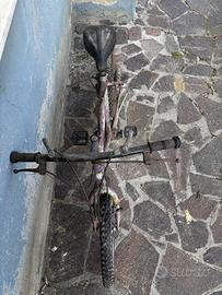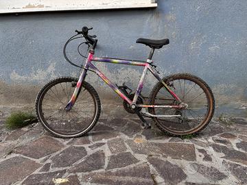Metto in vendita questa mountain bike da bambino, di marca VENTURI. Il punto forte è sicuramente il suo design "acid-washed" o a vernice spruzzata multicolore (rosa, giallo, verde, viola, arancione), che era molto di tendenza negli anni '90 ed è ora un'estetica molto ricercata. Il logo VENTURI è chiaramente visibile sul telaio, insieme ad altre decalcomanie come "Team Design". Dettagli Importanti sulla Condizione: Come si può vedere dalle foto, questa bicicletta ha una storia. È molto vissuta e ha una patina vintage autentica. • Estetica: Il telaio presenta graffi, sbiadimenti e la verniciatura non è perfetta. Il sedile è consumato. I manubri sono graffiati. • Meccanica: La catena, gli ingranaggi e altre parti metalliche mostrano ruggine superficiale visibile. I pneumatici sono sporchi, sgonfi e usati. È un'ottima bici "da battaglia" per un bambino che impara o per chi cerca un progetto di restauro divertente. Potrebbe necessitare di una messa a punto generale (come la lubrificazione).
