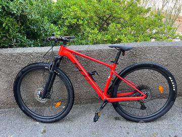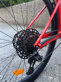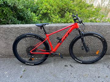 Telaio in alluminio con geometria Aspect taglia M Telaio GT con geometria moderna da trail/XC; forcella ammortizzata con blocco. Trasmissione SRAM 1x (una corona davanti, pacco pignoni ampio dietro). Copertoni Maxxis da XC/trail. Freni a disco. Taglia L