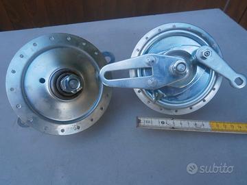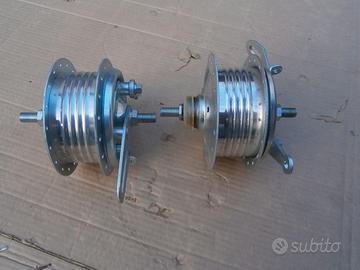 Coppia mozzi a tamburo della Grimeca Nuovi anteriore e posteriore con filetto per ruota libera 36 fori diametro 130mm. ancoraggio 105/110 per bici tandem ciclomotore e altro nuovi mai usati possibile ritiro a mano zona Forlì - Cervia