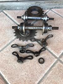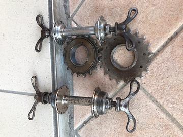 Mozzi bici corsa acciaio fb giroruta anni 30,revisionati e pronti al montaggio(sfere nuove)compreso farfalle di serraggio ruota libera e fissa caimi