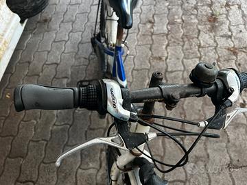 Buongiorno, vendo mountain-bike da bambino con cambio e parafanghi e portapacchi. Frenia tambutlro. Bici funziona bene , viene lasciata spesso fuori anche se coperta, per cui ne porta i segni