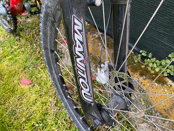 Mtb biammortizzata 26” Forcelle Manitou Freni shimano idraulici Cambio shimano deore Copertoni tioga Cassetta appena sostituita Movimento centrale shimano appena sostituito Pedali con pin freeride