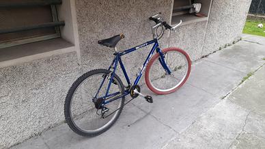 bicicletta MTB raggio 26 colore originale, cambio SHIMANO 18 rapporti perfettamente funzionanti, con porta borraccia, campanello, luce LED, sella imbottita, freni e gomme ottimi, pronta all'uso.