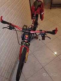 La bici è stata personalizzata come da foto, con pedali, manubrio lungo, tubo sella lungo e portapacchi, tutti in alluminio. luci a led con antifurto molto forte con telecomando, sella sportiva, borsa posteriore multi tasche comodissima e portaoggetti su tubolare. cerchi leggeri e porta borraccia in carbonio. La bici è stata usata solo due volte, quindi sempre in magazzino. pertanto si può scalare dal prezzo un'eventuale revisione freni luci pressione pneumatici...consegna a mano. cambio con metal detector di pari valore. Ottima per il passeggio o escursioni, ma non per cross . prezzo poco trattabile. solo per il mese di dicembre a 299€