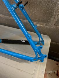 Telaio in alluminio con serie sterzo 1”1/8 e predisposizione freni a disco su telaio e forcella.
