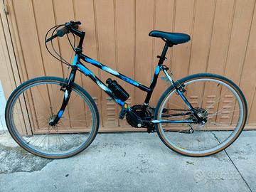 Vendo bicicletta MTB con ruote misura 26. idonea per donna / ragazza da 1,55 a 1,70cm. La bici viene venduta pulita in condizioni come da foto, funzionante. Monta cambio Shimano 18 rapporti e gomme da strada. Disponibile per presa visione senza impegno al mio domicilio Cinisello Balsamo